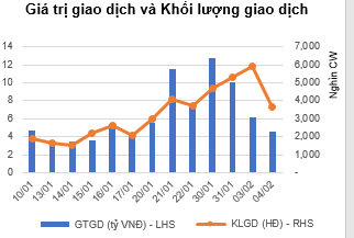 Chuỗi sụt giảm thanh khoản tiếp tục kéo dài tuy nhiên sắc xanh đã xuất hiện nhiều hơn trên thị trường chứng quyền. Giá trị giao dịch chỉ đạt 4.56 tỷ đồng, giảm -26% so với phiên trước. Ở những chứng quyền có thanh khoản tốt, CVPB1901 và CMBB1903 là những mã có mức tăng ấn tượng, lần lượt là +12.8% và +23.1%. Thị trường cơ sở đã phục hồi trong phiên hôm nay nhờ sự dẫn dắt của các cổ phiếu ngân hàng, đây vẫn là nhóm ngành hút dòng tiền mạnh mẽ nhất trên thị trường. NĐT trên thị trường chứng quyền có thể gia tăng lợi nhuận thông qua việc đầu tư vào các mã chứng quyền của cổ phiếu ngân hàng.