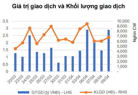 Thanh khoản trên thị trường chứng quyền tăng mạnh trở lại khi diễn biến của thị trường cơ sở tích cực hơn sau khi áp lực chốt lời giảm dần. Các mã chứng quyền có sự phân hóa khi các chứng quyền tăng giảm đan xen nhau. Các chứng quyền của KIS bất ngờ có thanh khoản tốt trong phiên hôm nay, trong đó chứng quyền CSTB2002 có thanh khoản dẫn đầu thị trường. Nhìn chung, thị trường cơ sở đang có các chuyển biến tích cực, giúp giảm thiểu rủi ro trên thị trường cơ sở, tuy vậy do thanh khoản của thị trường chứng quyền vẫn còn rất kém và biến động phức tạp, chúng tôi vẫn khuyến nghị NĐT tiếp tục quan sát thị trường và chưa vội mở vị thế mua mới.