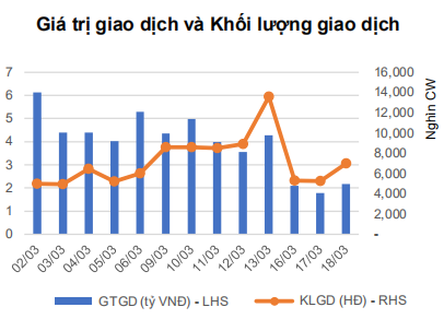 Mặc dù thị trường cơ sở đã có những dấu hiệu hồi phục tương đối tích cực nhưng không vì thế mà thị trường chứng quyền có diễn biến tích cực hơn. Thị trường vẫn trầm lắng với thanh khoản được giữ ở mức rất thấp cho thấy NĐT vẫn đang đứng ngoài và quan sát. Chúng tôi giữ quan điểm thận trọng và chờ đợi những diễn biến tích cực hơn nữa từ thị trường cơ sở.