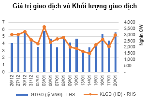 Thị trường chứng quyền có phiên giao dịch khá tích cực về thanh khoản khi giá trị giao dịch tăng lên mức 5.57 tỷ đồng (+24% so với phiên trước). Các chứng quyền có thanh khoản tốt trong phiên phần lớn đều tăng điểm, tuy nhiên mức độ tăng cũng chỉ khiêm tốn khi không có mã nào tăng vượt quá 10%. Các chứng quyền của HPG là những mã có mức tăng lẫn thanh khoản tốt trong phiên