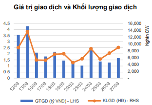 Thị trường chứng quyền có phiên giao dịch kém tích cực với nhiều mã giảm sâu và thậm chí có vài mã đã giảm sàn. Điểm tích cực đó là thanh khoản có cải thiện đôi chút mặc dù vẫn ở mức rất thấp. Chúng tôi tiếp tục khuyến nghị NĐT đứng ngoài quan sát thị trường và chờ đợi cơ hội tốt hơn.