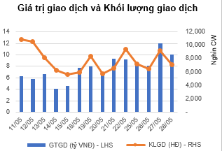 Mặc dù thị trường cơ sở có phiên hồi phục khá tích cực sau phiên giảm mạnh hôm trước nhưng diễn biến trên thị trường chứng quyền không thực sự tích cực với đa phần các mã giảm điểm. Ở nhóm những mã có thanh khỏa tốt, CHPG2004 là mã giảm đáng chú ý nhất với mức giảm -12%, đây cũng là mã có thanh khoản tốt nhất trên thị trường trong phiên. Hiện tại chúng tôi vẫn khuyến nghị NĐT tiếp tục thận trọng với thị trường và chờ đợi cơ hội tốt hơn tại nhịp điều chỉnh mạnh của thị trường cơ sở.