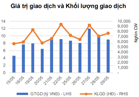 Thị trường có sự phân hóa rõ nét và thanh khoản sụt giảm phiên. Tại nhóm chứng quyền có thanh khoản tốt, CHPG200 là mã có thanh khoản tốt nhất và đồng thời tăng mạnh +16.7%, một mã có thanh khoản tốt khác cũng có mức tăng tích cực đó là CVRE2003 với mức tăng 19.8%, các mã còn lại trong nhóm này có mức biến động không đáng kể.