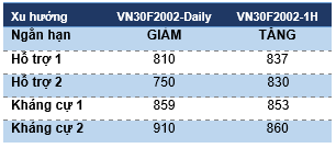 VN30F2002 biến động giằng co nhưng chưa phá vỡ xu hướng đi ngang. Cụ thể, giá đang ở giai đoạn cuối của mẫu hình tam giác hướng lên. Theo đó, nhịp hồi phục từ 811 điểm dự kiến sẽ còn tiếp diễn với kháng cự vùng 853-855 điểm tương ứng mục tiêu của mẫu hình trong khi hỗ trợ quanh 837-839 điểm.