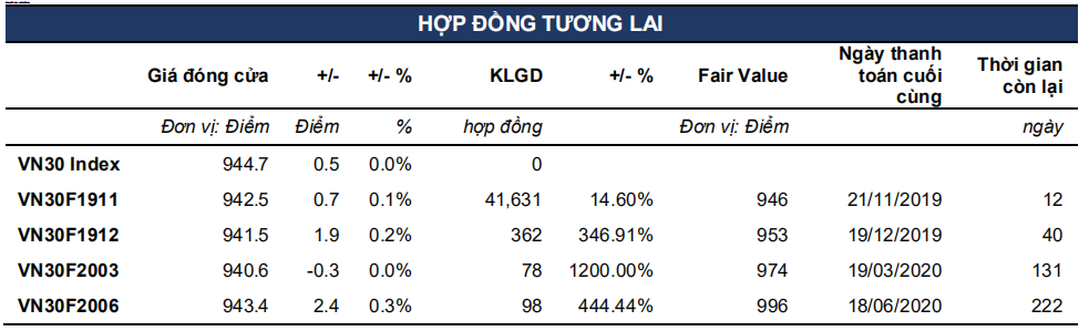 Bản tin phái sinh 08/11/2019: Tiếp tục tăng trên vùng 940 điểm