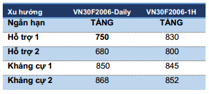 Chiến lược trong phiên (Intraday): NĐT xem xét chiến lược Short thận trọng khi giá gặp cản tại vùng 843-845 điểm, dừng lỗ 846.5 điểm và mục tiêu gần 830 điểm. Trong trường hợp, ngưỡng 830 điểm bị xuyên thủng hoàn toàn, VN30F2006 có thể suy yếu về vùng 800 điểm.