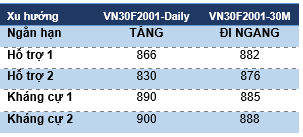 Trong khi đó, ở khung Daily, VN30F2001 vẫn đang đi ngang với kháng cự bên trên 888-890 điểm và hỗ trợ bên dưới 863 điểm.