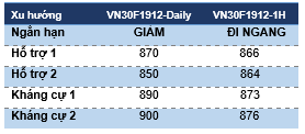 Chiến lược xu hướng chủ đạo trong ngắn hạn (Daily): Duy trì vị thế Short với dừng lỗ khi giá đóng cửa trên 891.5 điểm.