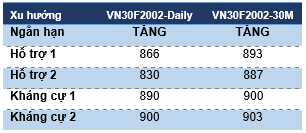 Chiến lược xu hướng chủ đạo trong ngắn hạn (Daily): Nhà đầu tư có thể mở vị thế Long ở khung Daily khi VN302002 đóng cửa trên 899 điểm.