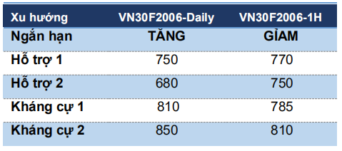 Chiến lược xu hướng chủ đạo trong ngắn hạn (Daily): Nhà đầu tư chờ đợi điểm vào mới trên VN30F2006 với vùng hỗ trợ đáng chú ý tại 748-755 điểm.