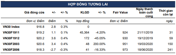 Chiến lược trong phiên (Intraday): Với tín hiệu tăng đã rõ ràng hơn, NĐT có thể mở vi thế Long VN30F1911 ở vùng giá hiện tại, mục tiêu 923-925 điểm và dừng lỗ ở mức 917.8 điểm.