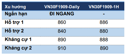 Ngoài ra, đếm sóng Elliott cho thấy đồ thị VN30F1909 đã hoàn thành sóng 5 của nhịp tăng từ 861 điểm nên khả năng điều chỉnh về quanh vùng 880 điểm hoặc sâu hơn trong ngắn hạn.