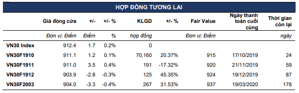 Bản tin phái sinh 25/09/2019: Ưu tiên giao dịch trong phiên