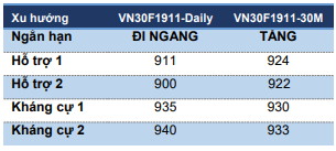 VN30F1911 gặp kháng cự trước ngưỡng 930 điểm và điều chỉnh trở lại khi chỉ báo RSI cho phân kỳ giảm giá rõ nét hơn. Đồng thời, chỉ báo Stochastic Oscialltor(18,18,6) đã cho bán xác nhận tín hiệu điều chỉnh và nhịp điều chỉnh ngắn có thể tiếp tục.