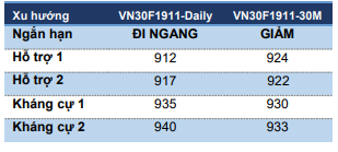 Chiến lược trong phiên (Intraday): NĐT có thể Short khi giá vẫn chưa tiếp cận vùng 924 điểm, dừng lỗ 928.8 điểm. Lệnh Long chỉ nên thăm dò với tỷ trọng thấp khi giá bật tăng mạnh từ vùng quanh 924 điểm, dừng lỗ ở mức 922 điểm và mục tiêu 928 điểm.