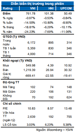 Chúng tôi cho rằng thị trường có thể sẽ hồi phục về lại vùng 780 điểm của chỉ số VN-Index. Điểm tích cực là lực cầu bắt đáy gia tăng và TTCK thế giới đã hồi phục vào phiên cuối tuần cho nên tâm lý có thể sẽ tích cực hơn ở các phiên giao dịch đầu tuần. Đồng thời, tỷ trọng cổ phiếu tiếp tục giảm và dưới mức 10% cho thấy khả năng cao thị trường sẽ sớm xác lập vùng đáy ngắn hạn.