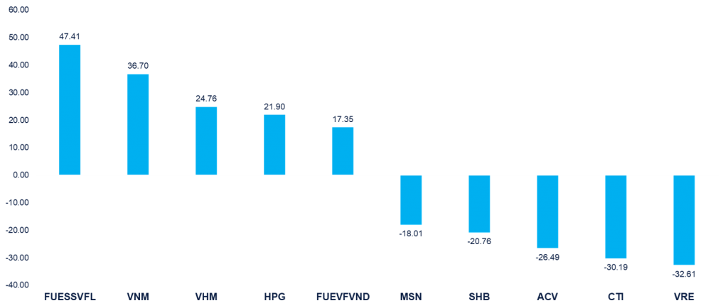 - Nhìn chung, theo quan sát của chúng tôi, khối ngoại vẫn chủ yếu tập trung mua ròng ở nhóm cổ phiếu Bluechips có thanh khoản cao.