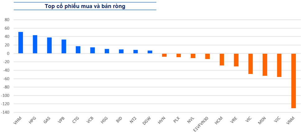 Khối ngoại giảm bán ròng chỉ còn hơn 16 tỷ trên cả ba sàn. Đồng thời, kết thúc hai phiên giao dịch, khối ngoại đã bán ròng gần 198 tỷ, không loại trừ đây cũng là thời điểm các quỹ ETF theo VN30 đang thực hiện cơ cấu danh mục.