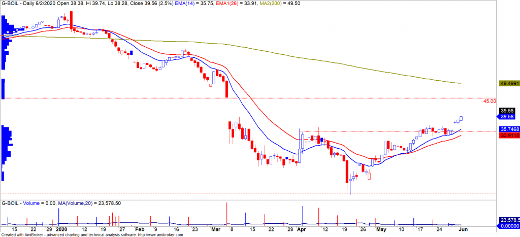 - Giá dầu Brent đóng cửa tăng hơn 2.5% và đồ thị giá tiến vào vùng khoáng trống giảm giá được hình thành trong phiên 08/03/2020. Đồng thời, xu hướng ngắn hạn vẫn duy trì ở mức TĂNG và đồ thị giá có dấu hiệu bước vào giai đoạn biến động mạnh theo chiều hướng tích cực cho nên đồ thị giá có thể sẽ sớm tiệm cận mức kháng cự $45.