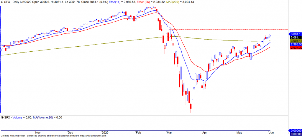 - Chỉ số S&P500 quay trở lại đà tăng và vượt xa đường trung bình 200 ngày. Đồng thời, chỉ số này cũng đạt mức cao nhất 12 tuần. Xu hướng ngắn hạn của chỉ số này vẫn duy trì ở mức TĂNG, nhưng mức kháng cự gần nhất là 3,131 điểm.