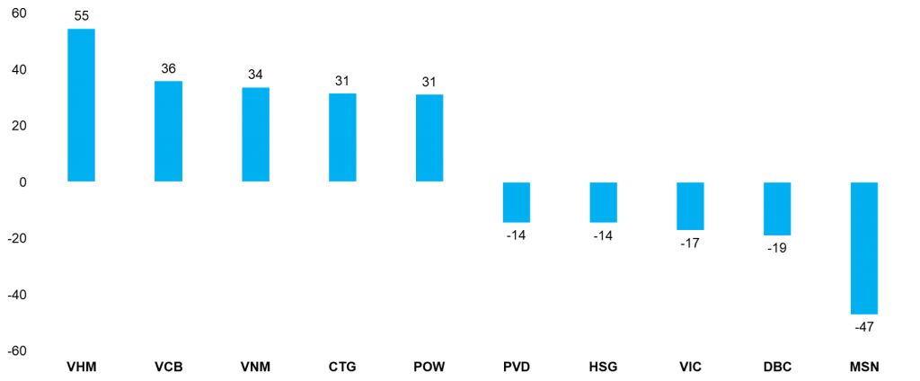 - Khối ngoại vẫn chủ yếu tập trung mua ròng ở nhóm cổ phiếu ngân hàng (88.7 tỷ) và Sản xuất & Phân phối điện (27.58 tỷ).