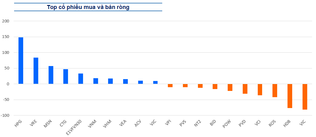 Khối ngoại mua ròng mạnh trong phiên giao dịch cuối tuần với giá trị hơn 138 tỷ. Tổng kết tuần giao dịch 30/12/2019 – 03/01/2020, khối ngoại đã mua ròng 62 tỷ trên cả ba sàn, trong đó cổ phiếu HPG là cổ phiếu được khối ngoại mua ròng mạnh nhất và CCQ E1VFVN30 tiếp tục được khối ngoại mua ròng liên tiếp.