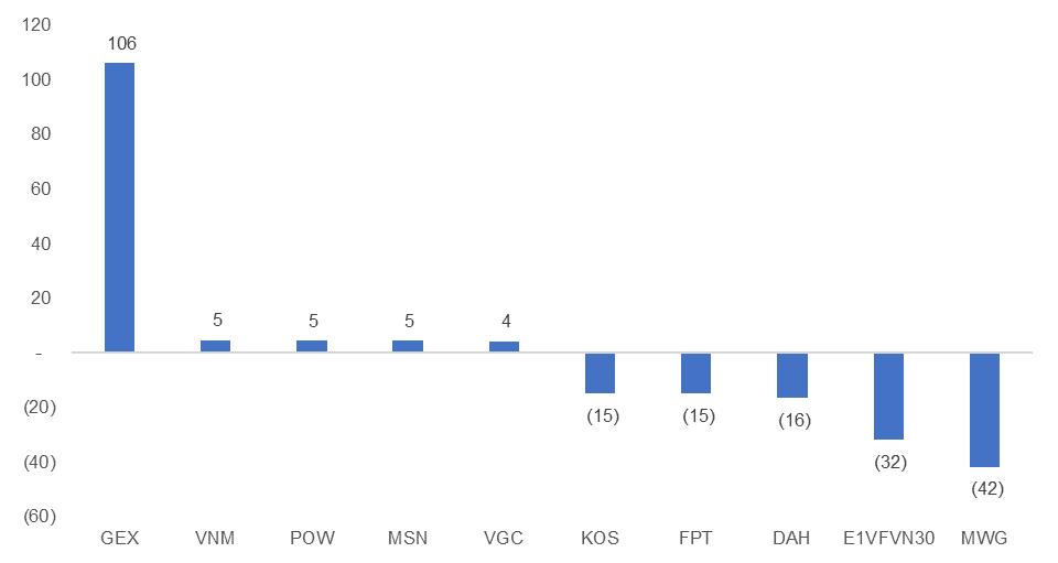 Tự doanh bán ròng hơn 38.5 tỷ trong tuần 30/12/2019 – 03/01/2020. Trong đó, GEX là cổ phiếu được tự doanh mua ròng mạnh nhất.