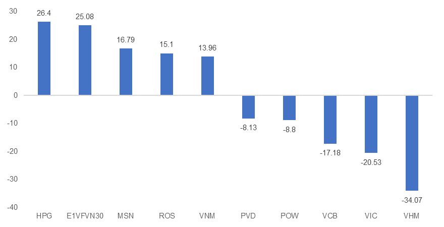Khối ngoại duy trì mua ròng nhẹ hơn 25 tỷ bất chấp thị trường giảm mạnh. Đồng thời, giá trị mua ròng cũng gia tăng mạnh.