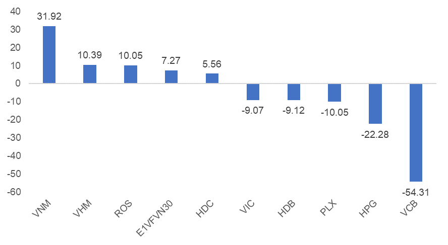 Khối ngoại quay trở lại bán ròng hơn 74 tỷ trên cả ba sàn. Trong đó, khối ngoại quay sang bán ròng ở VCB và HPG.