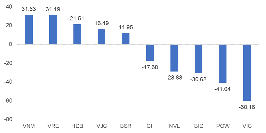 Khối ngoại tiếp tục bán ròng gần 111 tỷ trên cả ba sàn. Trong đó, VIC vẫn tiếp tục bị bán ròng mạnh, nhưng điểm tích cực là áp lực bán ròng này không khiến cổ phiếu giảm mạnh và chỉ khiến cổ phiếu này biến động mạnh trong phiên.