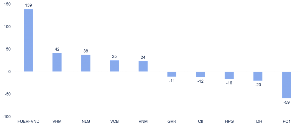- Lượng bán ròng vẫn ở mức thấp và chủ yếu tập trung bán ròng cổ phiếu PC1.
