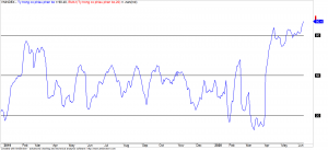 - Chỉ báo tâm lý ngắn hạn đang rơi vào vùng quá mua cho thấy tâm lý nhà đầu tư đang lạc quan quá mức cho nên chúng tôi đánh giá chỉ số VN-Index và VN30 sẽ có khó có thể vượt qua đường trung bình 200 ngày.