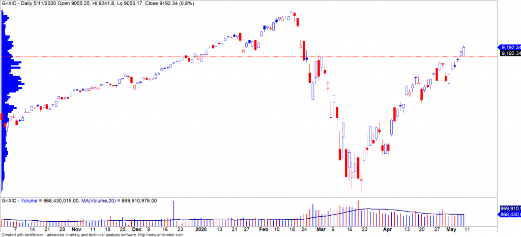 Nhóm cổ phiếu ngành công nghệ tiếp tục dẫn dắt đà tăng của TTCK Mỹ bất chấp các yếu tố vĩ mô vẫn còn rất tiêu cực. Chỉ số Nasdaq duy trì đà tăng về mức kháng cự kế tiếp 9,542 điểm và xu hướng ngắn hạn vẫn duy trì ở mức TĂNG. Đồng thời, rủi ro ngắn hạn vẫn duy trì ở mức thấp và mùa báo cáo quý 1/2020 đang diễn ra phân hóa giữa các nhóm cổ phiếu