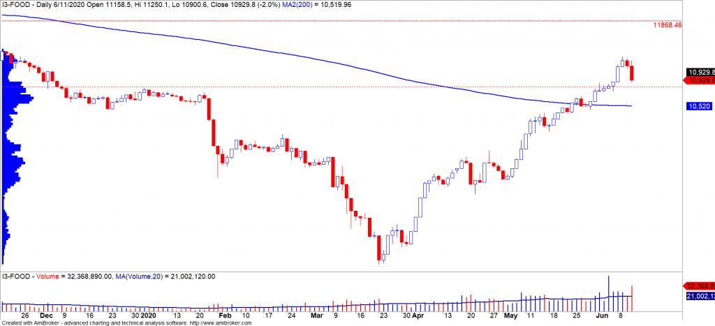 - Chỉ số ngành Sản xuất thực phẩm đóng cửa giảm 2% và đồ thị giá quay trở lại ngưỡng hỗ trợ ngắn hạn. Đồng thời, chỉ số này vẫn duy trì trên đường trung bình 200 ngày và xu hướng ngắn hạn vẫn duy trì ở mức TĂNG.