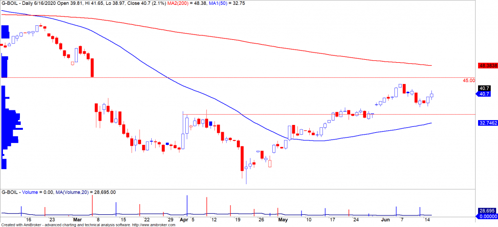 - Giá dầu Brent tăng hơn 2% và vượt mức $40. Đồng thời, xu hướng ngắn hạn vẫn duy trì ở mức GIẢM.