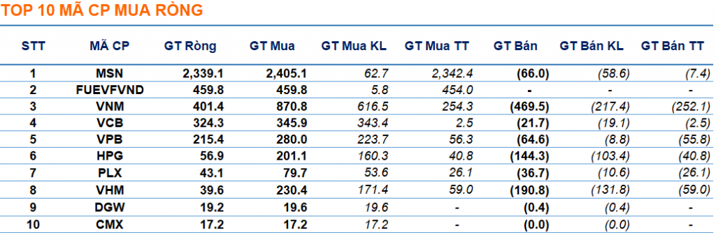 Khối ngoại mua ròng mạnh và tăng đột biến hơn 2,127 tỷ trong tuần 11 – 15/05/2020. Lượng mua ròng chủ yếu đột biến ở cổ phiếu MSN, đặc biệt CCQ FUEVFVND cũng được khối ngoại mua ròng gần 460 tỷ trong tuần giao dịch qua. Ngoài ra, nhóm cổ phiếu ngân hàng cũng là nhóm được khối ngoại mua ròng mạnh, trong đó VCB và VPB là hai cổ phiếu dẫn đầu giá trị mua ròng của khối ngoại.