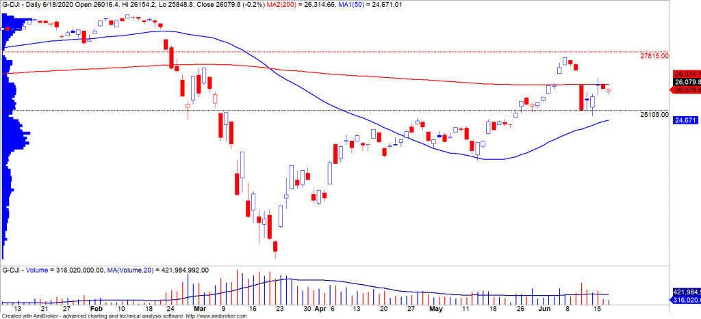 • Chỉ số Nasdaq là chỉ số đóng cửa trong sắc xanh duy nhất. Còn chỉ số Dow Jones giảm nhẹ 0.2% và đồ thị giá vẫn giao dịch dưới đường trung bình 200 ngày với khối lượng giao dịch ở mức thấp. Ngoài ra, xu hướng ngắn hạn của chỉ số Dow Jones vẫn duy trì ở mức GIẢM.