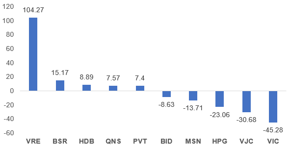Khối ngoại giao dịch cân bằng và cả giá trị mua/bán đều lớn.