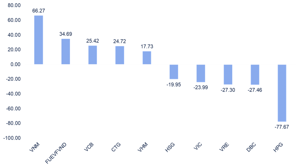 Nhóm cổ phiếu ngân hàng tiếp tục được khối ngoại mua ròng hơn 49 tỷ, chủ yếu tập trung mua ròng ở các cổ phiếu dẫn dắt nhóm cổ phiếu này như VCB, CTG. Ở chiều bán ròng, khối ngoại quay sang bán ròng nhóm cổ phiếu Kim loại khi nhóm cổ phiếu này đã tăng mạnh.