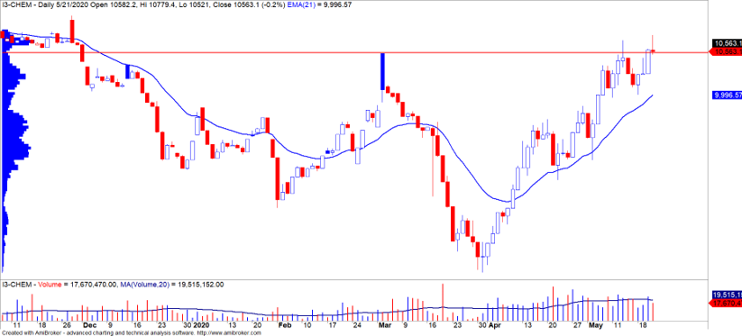 - Chỉ số nhóm ngành Hóa chất đã tăng 8.2% trong 1 tháng qua. Đồng thời, đồ thị giá đang giao dịch tại vùng kháng cự ngắn hạn, đặc biệt rủi ro ngắn hạn có dấu hiệu gia tăng cho thấy xu hướng tăng ngắn hạn có thể sẽ suy yếu.