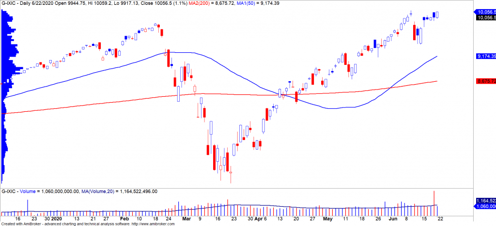 • Chỉ số Nasdaq đóng cửa tăng 1.1% và xác lập mức đỉnh kỷ lục mới. Đồng thời, xu hướng ngắn hạn của chỉ số này được nâng từ mức GIẢM lên TĂNG.