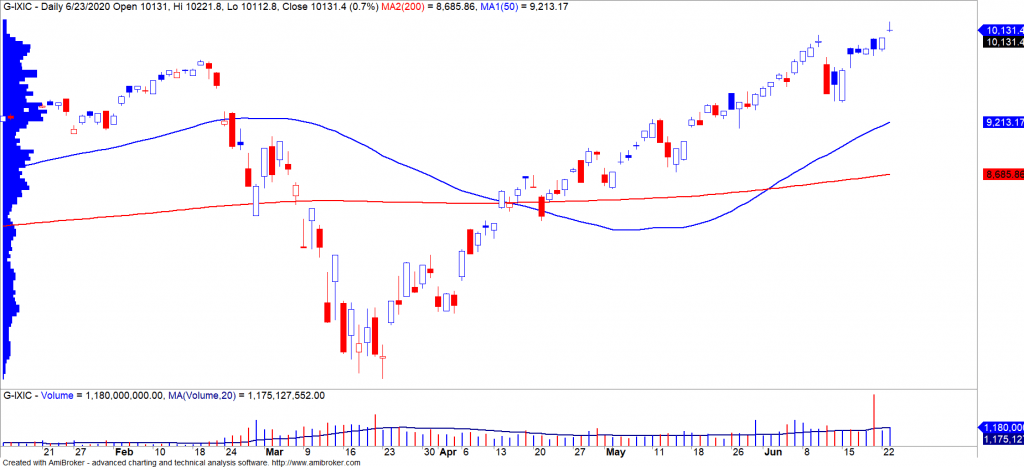 - Nhóm cổ phiếu ngành công nghệ vẫn dẫn dắt đà tăng chính của thị trường. Tuy nhiên, tâm lý lo ngại về tình hình dịch bệnh và căng thẳng thương mại Mỹ-Trung đã khiến các chỉ số thu hẹp đà tăng về cuối phiên.