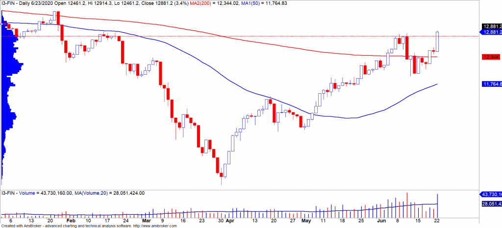 - Đồ thị giá của nhóm này đã có phiên tăng hơn 3% với khối lượng giao dịch tăng đột biến. Đồng thời, xu hướng ngắn hạn của chỉ số này đã được nâng lên mức TĂNG.