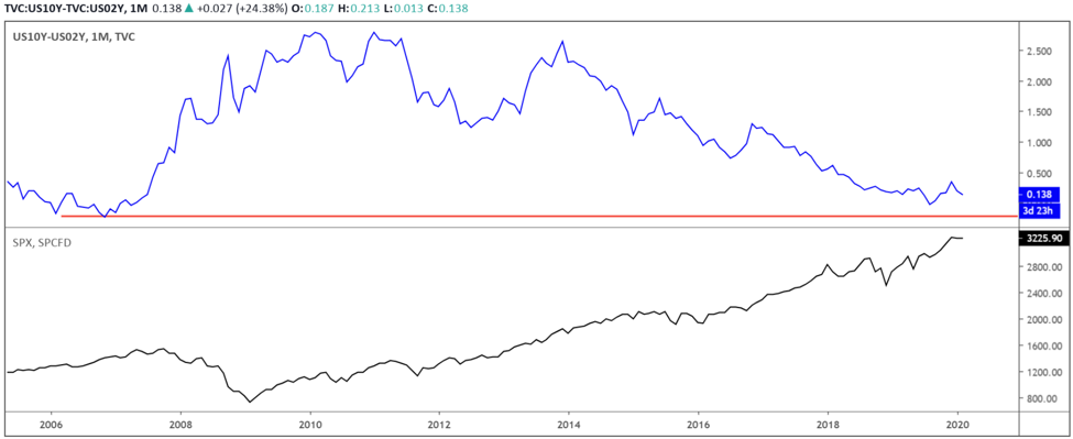 Dấu hiệu cảnh báo khủng hoảng kinh tế quay trở lại. Mức chênh lệch lợi suất trái phiếu 10 năm và 2 năm quay đầu giảm, một trong những tín hiệu cảnh báo khủng hoảng kinh tế trong quá khứ khi mà dòng tiền đang tập trung ở kênh trái phiếu nhằm tránh rủi ro từ thị trường cổ phiếu.