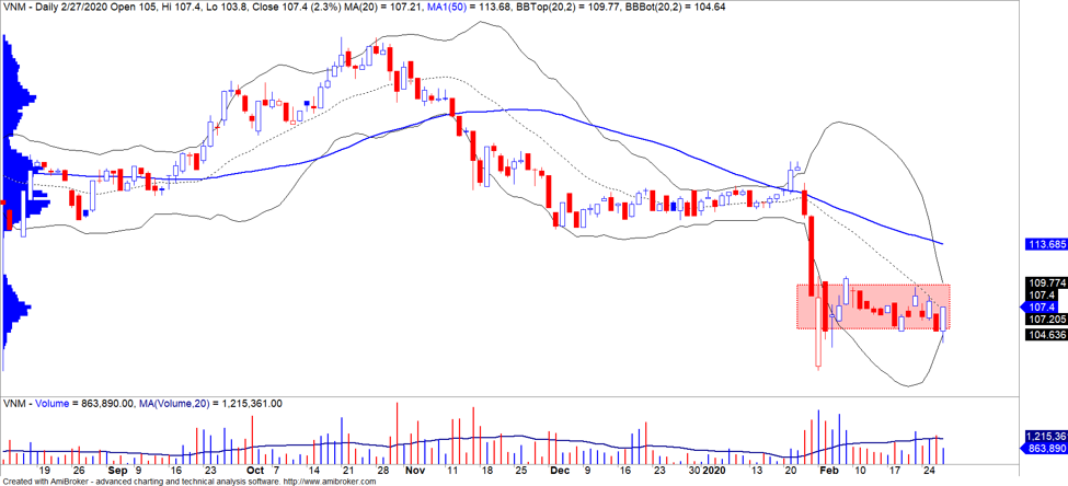 - Đồ thị giá của VNM tiếp tục biến động hẹp và chúng tôi đánh giá đồ thị giá của VNM sẽ sớm bước vào giai đoạn biến động mạnh, tức là xu hướng sẽ rõ ràng hơn trong vài phiên tới.