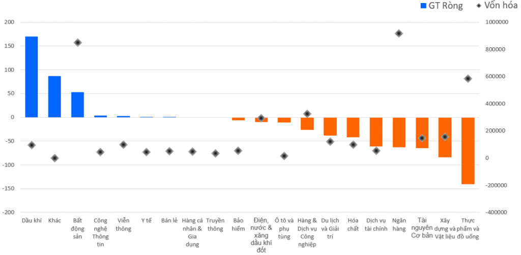 • Còn ở chiều mua ròng, khối ngoại tập trung mua ròng ở nhóm Dầu khí, ETF và Bất động sản.