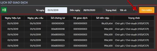 Mô tả: Khách hàng yêu cầu nộp ký quỹ yêu cầu / duy trì bằng tiền vào tài khoản ký quỹ do CCP quản lý.