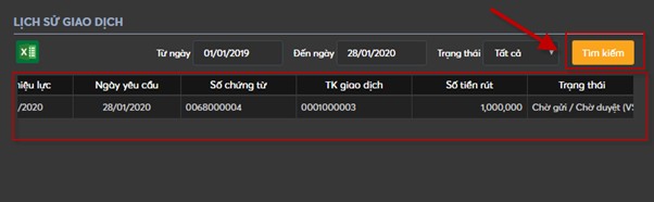 Mô tả: Màn hình “Lịch sử giao dịch” cho phép khách hàng tra cứu lịch sử nộp tiền mà khách hàng đã thực hiện.