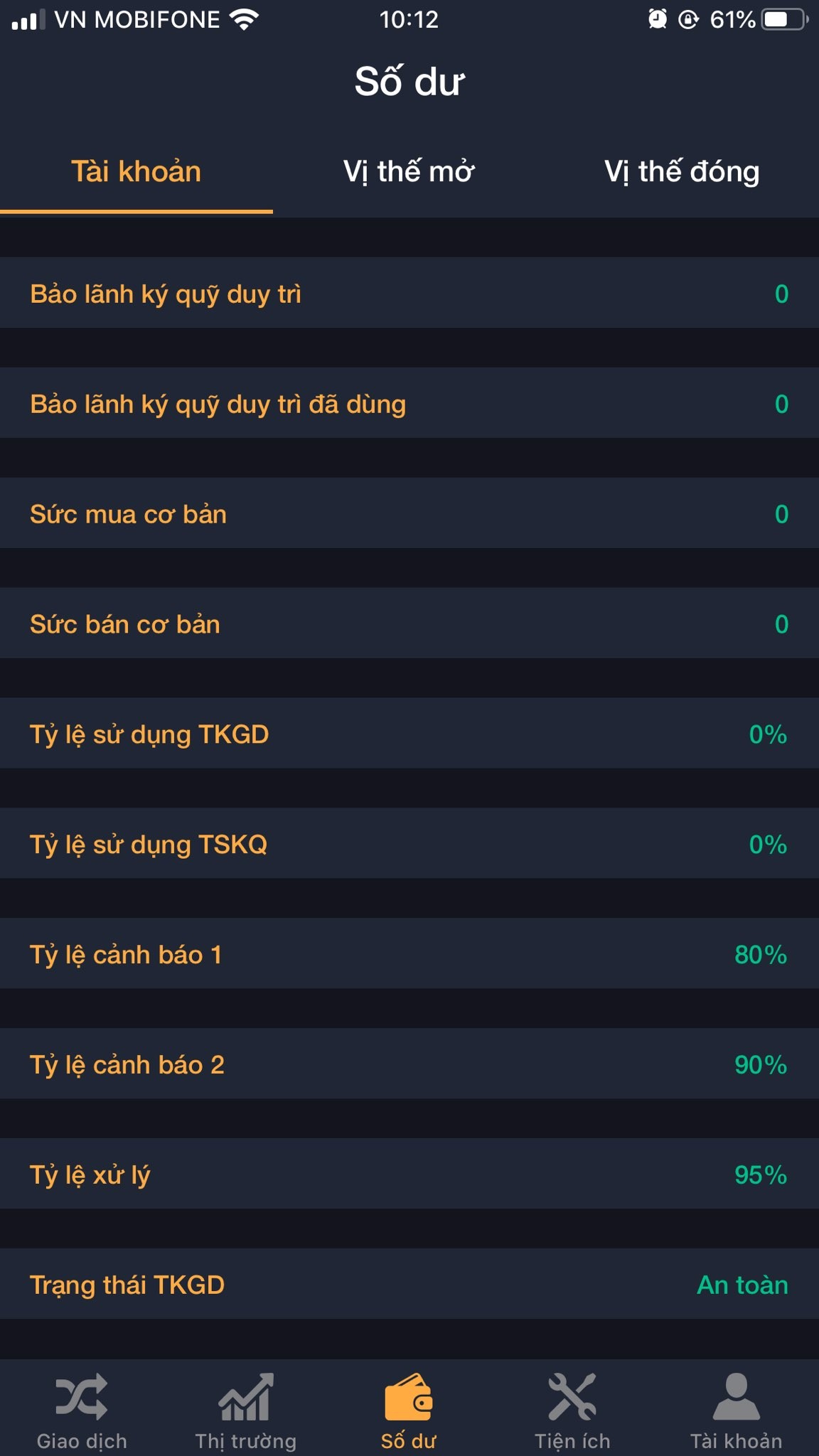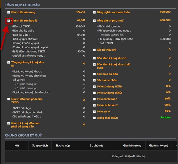 | Số tiền ký quỹ cần bổ sung | Số tiền nộp thêm để đưa về tỷ lệ an toàn max (DTA,DMA) |