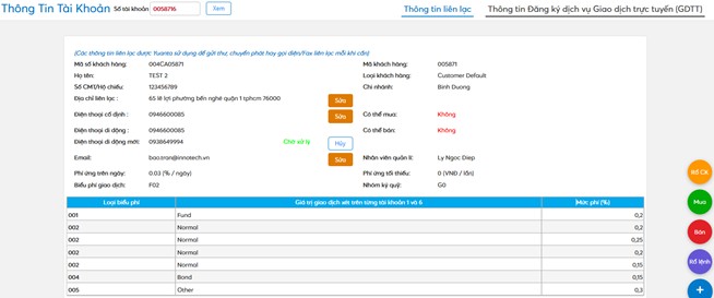 - Bổ sung thêm thông tin biểu phí của khách hàng.